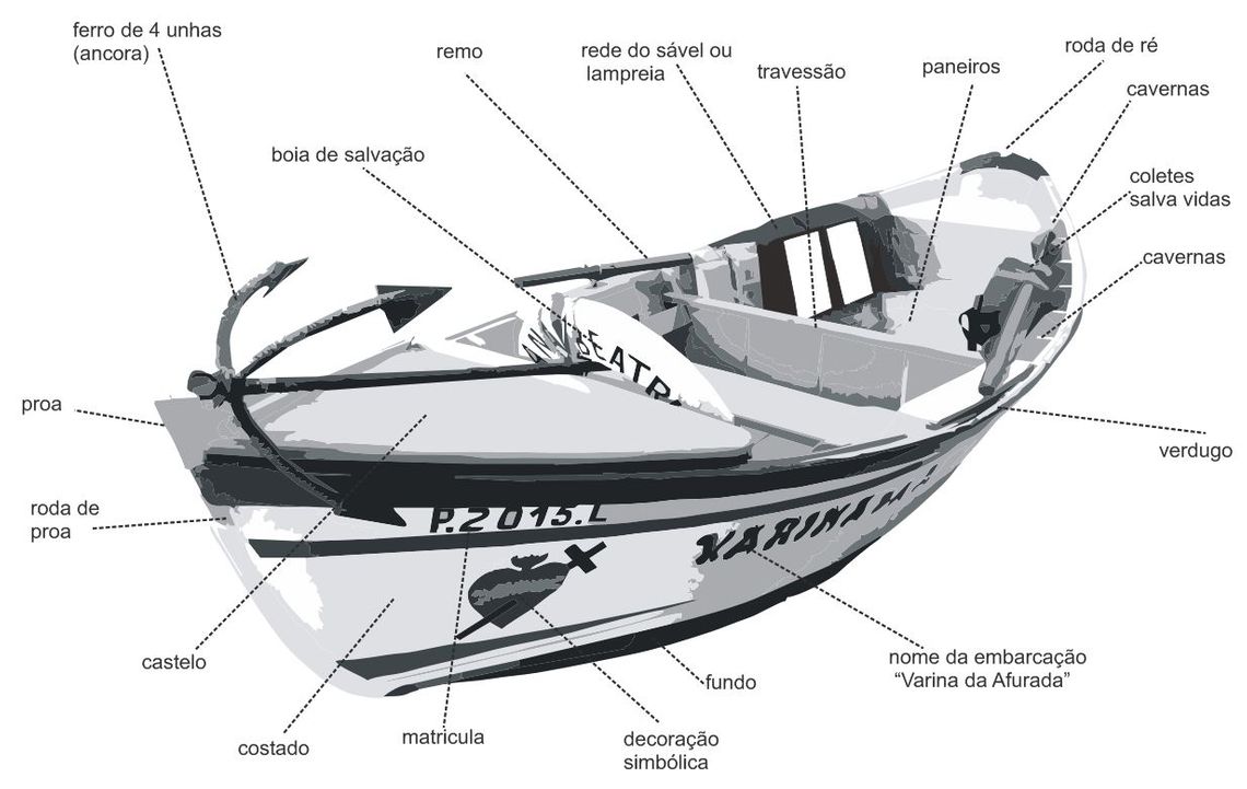 Esta embarcação foi construída tal como as originais, com 5.60 metros de comprimento, em madeira de pinho, com “cavernas” a estruturar.